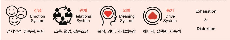 필자가 말하는 사람의 고장’은 단순한 역량 부족을 의미하지 않는다. 감정·관계·의미.동기라는 인간 시스템의 핵심 요소가 소진(Exhaustion)되거나 왜곡(Distortion)되면서 판단과 행동의 질을 유지하지 못하는 상태를 말한다. 이 상태가 누적되면 생산과 운영 전반의 트러블은 자연스럽게 늘어난다 [표1]