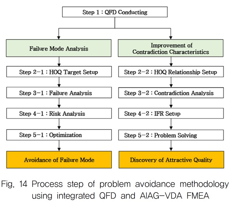지금까지 논의된 QFD와 AIAG-VDA FMEA 통합활용을 이용한 상세 접근법 절차를 Fig. 14에 도시하였다.