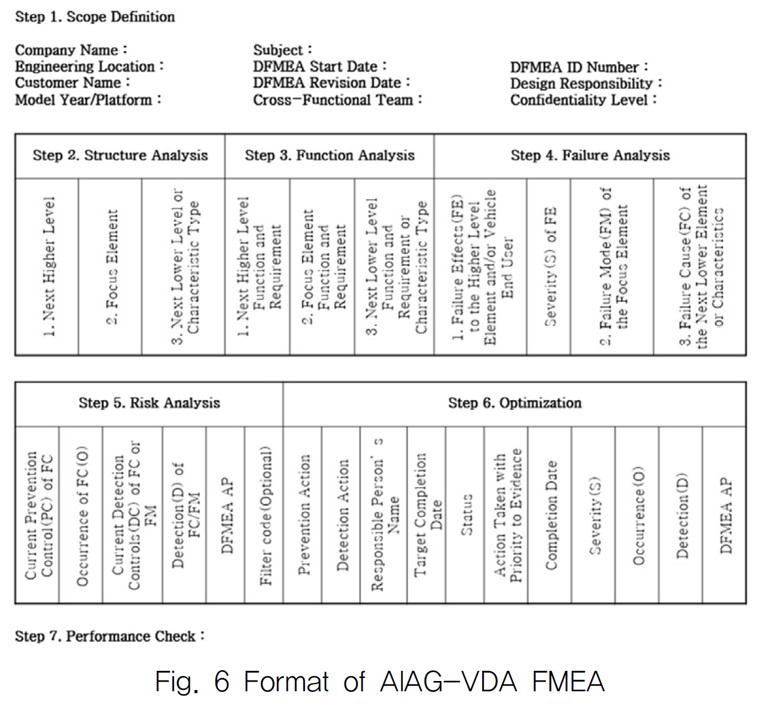 그리고 자동차 산업분야에서는 북미와 유럽의 글로벌 자동차 제조사와 주요 부품 협력사간의 심도 있는 논의를 통하여 AIAG(Automotive Industry Action Group)-VDA(Verband der Automobilindustrie) FMEA로 새롭게 개정되면서 자동차 제작사와 부품 협력사의 시대적 요구까지도 반영되어 발전하고 있다.(7~9)