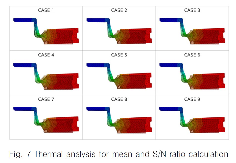 평균의 경우 3-2-2-2 수준의 반경방향 햇 높이, 축방향 햇 높이, 언더컷 깊이, 언더컷 단차를 갖는 것이 망소특성을 잘 반영하는 것으로 나타났다. 또한, SN비 측면에서도 3-2-2-2 수준이 가장 높은 SN비를 나타내고 있음을 확인할 수 있었다.